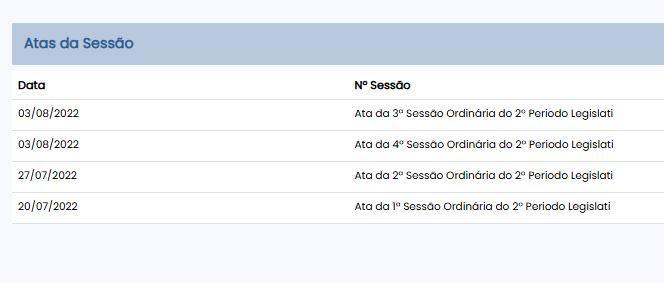 Nessa página de Transparência, quando selecionado o link “Atas das Sessões”, o último registro é de agosto de 2022, há mais de 3 anos. A quem interessa não disponibilizar à população o registro das Atas das Sessões Ordinárias e principalmente as Extraordinárias?